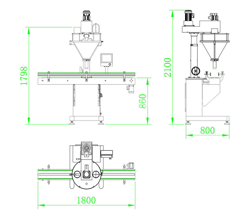 氣動托罐裝置,保證充填時物料不灑出容器外。