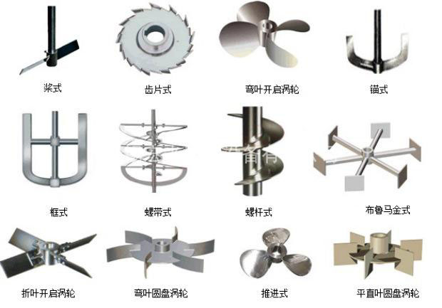 有平槳式和斜槳式兩種。平槳式攪拌器由兩片平直槳葉構成。槳葉直徑與高度之比為 4~10,圓周速度為1.5~3m/s,所產生的徑向液流速度小。斜槳式攪拌器的兩葉相反折轉45°或60°,因而產生軸向液流。槳式攪拌器結構簡單,常用于低粘度液體的混合以及固體微粒的溶解和懸浮。