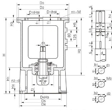 XD、XS型機(jī)架輸入端接口尺寸減速機(jī)輸出軸徑d0