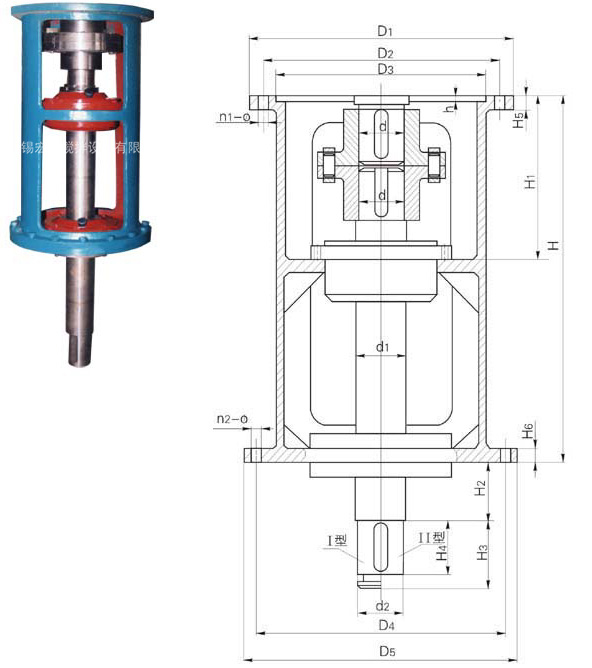 機(jī)架型號 減速機(jī) D1 D2 D3 n1-φ D4 D5 n2-φ d d1 d2 h H H1 H2 H3 H4 H5 H6